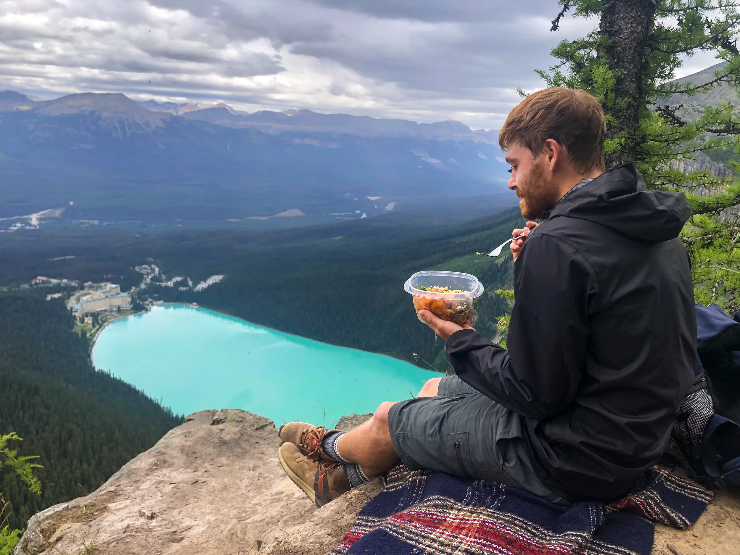 If ever there was a summer activity that summed up Lake Louise, then having a picnic on top of a mountain while watching canoes float around like little ants below you, is certainly that.