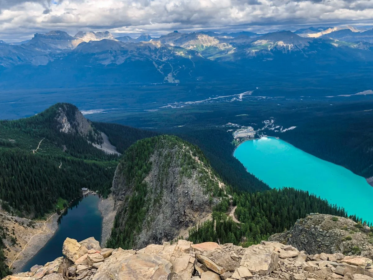 If you squint, you can just about see all the little red canoes floating on the water down below. The Devil’s Thumb hike really is one of the best summer activities possible in Lake Louise.